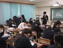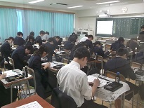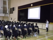 1年生は午後、本校薬剤師の先生を講師に薬物乱用防止教室を行いました。存在が危険な薬や用法用量を守らないことによる危険な薬など、正しい知識を身につけ心身の健康について考える機会になりました。