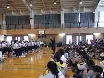 よく晴れた土曜日に、大三小で「葉かげのつどい&応援団まつり」がありました。毎年、本校吹奏楽部も出演させていただき、大三小金管バンドと共演しています。この日も多くのお客様の前で楽しい演奏を披露しました。