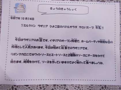料理として人気があります。今日は初めて給食でのラザニアです。