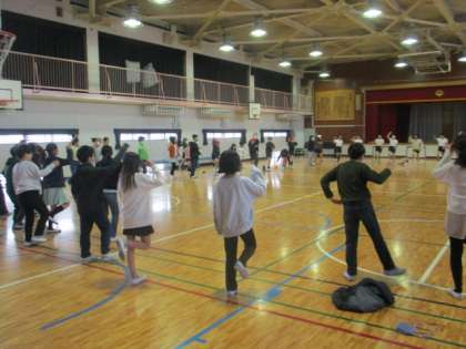 5年生は、来週から岩井移動教室が始まります。楽しみにしているキャンプファイヤー。今日は、点火の儀式や踊り、レクリエーションの練習をしました。