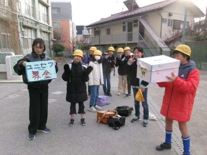 今日と明日の2日間、朝の玄関前で代表委員会がユニセフ募金活動を行います。