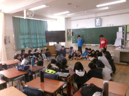 掃除の時間からお昼休みのお終いの時間まで、各クラスでゲームを考えて楽しむ「練二タイム」を行いました。外で遊ぶクラスもあります。天気が良くて気持ちがいいですね。