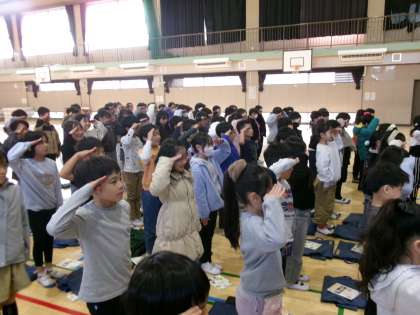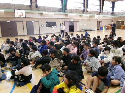 全校児童が体育館に集まります。