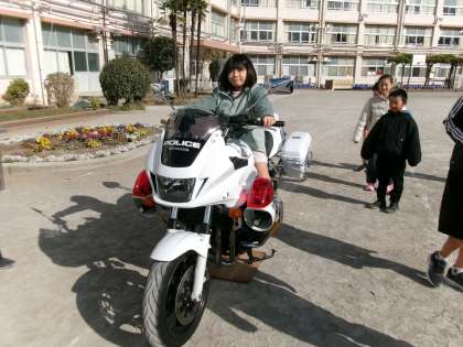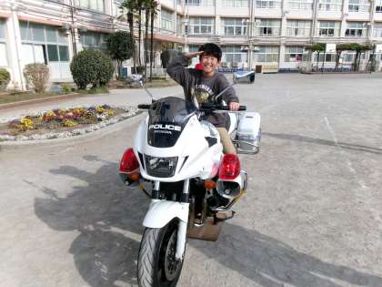 なんと、校庭では白バイに乗った警察官の方も。