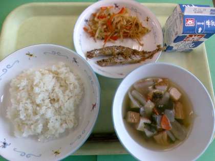明日、11月8日は「118(いいは)」の語呂合わせで、「いい歯の日」です。いい歯の日にちなんで、するめいかやししゃも、根菜などよく噛む食材を使った「かみかみ献立」を作りました。よく噛むことで唾液がたくさん出て、虫歯予防につながります。また、よく噛むことは、虫歯予防だけでなく、よいことがたくさんあります。例えば、「脳細胞の活性化」「味覚の発達」などです。定期考査前の忙しい時期ですが、食事の時間はゆったりとよく噛むことを意識して食べられるといいですね。