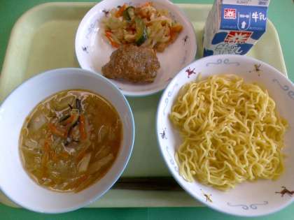 今日はリクエスト給食の「みそラーメン」を作りました。豚骨と鶏ガラでとった出汁に野菜やお肉のうま味が出たスープが味の決め手です。いかのたれには、すりごまと炒りごまをたっぷり使っています。