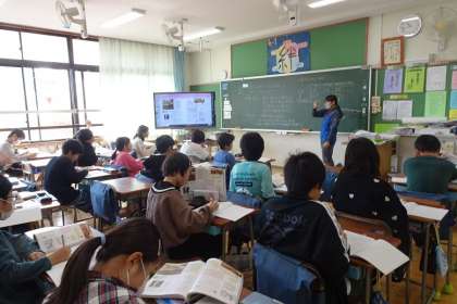 写真は、4年生社会「まちのうつりかわり」の学習の様子です。