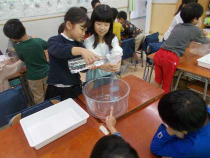 昔は生活排水がそのまま川に流され、ゴミや泡だらけになっていたという事実を知り、その深刻さに多くの子どもたちが驚きの声を上げていました。また、下水道が整備されていないことが、水害や洪水を引き起こすことにもつながるという学習を通じて、身近な問題と防災への意識を結びつけて考える様子も見られました。また、水再生センターでの水をきれいにする仕組みについて詳しく学びました。特に、上水道が薬を使って水をきれいにするのに対し、下水道では「マクロビオツス」のような生物の力を利用して水を自然に戻すという違いです。トイレットペーパーなどを使った実験も含め、環境を汚さないための工夫や、自然の力を活かした浄化の仕組みについて深く考えていました。 この学習を通して、子どもたちは、下水道局の方々の努力によって、洪水が防がれ、私たちが安全で衛生的な生活を送れていることへの感謝の気持ちも抱きました。 今回の学びをきっかけに「下水道マイスター」(環境のことを考えて行動できる人)として、水を大切にする意識や日々の生活で環境に配慮する行動を、ご家庭でもさらに深めていただければ幸いです。