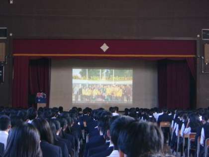 本日、本校の生徒が、夏休みに練馬区立中学校生徒海外派遣生として参加したオーストラリア派遣プログラムの体験を発表しました。現地の生活習慣の違いに触れ、交流を通じて多くの学びを得た様子を紹介しました。英会話にも積極的に挑戦し、言語だけでなく、コミュニケーションの大切さを実感する貴重な経験となりました。この学びは、今後の学校生活や国際交流にも生かせる大切な気づきとして、学校全体で共有しました。