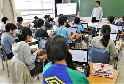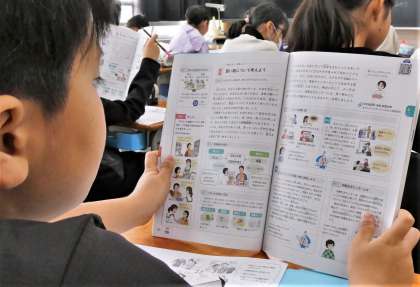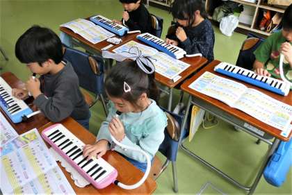 卒業アルバムは、前半が写真のページになり、後半が文集ページで構成されます。6年生の各教室では、文集ページに載せる作文の作成が始まりました。以前は原稿用紙に下書きをしたものに先生が直しを入れ、さらに下書きをしてから清書するというように、何度も手間と時間をかけて行っていました。しかし、タブレットが導入されてからは、子ども達が文章を打ち込んで作文を作っていくようにしています。作文の添削は担任の先生が行いますが、タブレットに入力することで、文章を付け加えたり削除したりすることが容易に行えます。また、一人分の文集ページの文字数が決まっているため、作文の長さをちょうどよく調整するのにも便利です。 6年生は、他の教科でもタブレットをよく使用しています。いつも教室の様子を見に行くと、会社のオフィスかと思うほど、タブレットに向かってキーボードを打つ音が聞こえてきます。(写真上) ところで、コロナ禍の途中から一斉に使い始めたタブレットが、今年度でリース期間が終了します。それに伴い、3学期に新しいタブレットが届き次第、順次交換していくことになっています。タブレットとともに、充電器やLTE回線につなぐドングル、そのための接続コードと、付属品がいくつか全員に貸与されています。3学期にはそれら全てをセットにして返却することになりますので、紛失のないように準備しておいてください。 5年生は、家庭科の時間に「買い物について考えよう」という学習をしています。買い物について、目的に合った選び方や買い方ができるようになることをめあてとした学習単元です。 教科書には、「買い物」の定義が書かれています。買い物と言ったら、「お金を出してお店で物を買うこと」でよいのですが、そこは教科書です。きちんとした用語を使い、「消費者である私たちが、お金を支払って商品を受け取ることを買い物と言います。」と書いてあります。また、「買い物は、買う人の申し出を、売る人が受けて成立する売買契約でもあります。」と書いてあります。つまり、レジでお金を払い、商品を受け取った時よりも少し前の・・・「これをください」と言った時点で売買契約が成立しているということになります。そのため、一方的な理由で商品を返すことができないので、責任ある態度で買い物をすることが重要であるという説明も加えられています。(写真中) その他にも、時代に合わせて教科書の記載内容が変わってきていることが感じられます。いろいろな支払方法として、ICカードや商品券、電話やインターネットでの注文のことまで記載されています。さらに、通信販売でのトラブルや、消費生活センターへの相談窓口についても書かれていて、5年生の家庭科での指導内容となっています。 5校時に、1年2組の教室から「よろこびのうた」が聞こえてきました。11月に入ったばかりですが、年末になると日本ではあちこちで聞こえてくるいわゆるベートーヴェンの「第九」の有名な旋律です。1年生の子ども達は、鍵盤ハーモニカの練習教材として、この曲を繰り返し練習しているところです。(写真下) 楽譜には、日本語の歌詞も書かれていて、「晴れたる青空 ただよう雲よ♪」と歌うようになっています。「第九」は、ベートーヴェンの交響曲第9番の第4楽章につけられた合唱部分が有名です。原曲は、シラーの詩を用いたドイツ語で書かれています。それを日本語の歌詞にしたのは、岩佐東一郎でした。(教科書にも記載があります)これは、かなり昔に小学校の音楽教科書向けに作詞されたようです。その内容は、原曲の宗教的な要素が一切なく、美しい自然と人々の幸せが明るく朗らかに表現されたものになっています。 年末に第九を歌うのは、世界でも日本だけです。半世紀ほど前から、アマチュア合唱団が年末に第九を歌うというブームが起こりました。素人にはドイツ語で歌うのは難しく、曲に合った日本語訳の歌詞が欲しいという声から、「歓喜の歌・日本語版」が作られました。これは、日本の数々のヒット曲の作詞を手掛けた なかにし礼 による日本語訳です。原曲の内容を踏まえた訳詞になっています。 11月6日の給食