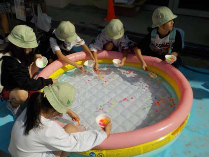 春に植えたさつまいものの収穫を行いました。大きな木の陰にある畑のため、例年あまり収穫できないのですが、今年は例年に比べると多く取れました。子どもたちは宝探しのように一生懸命に掘っていました。