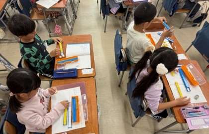 子供たちにとって、とても難しい概念。しっかりと考え方を押さえた上で、たくさんの文に触れながら、自然に身に付けさせていきます。