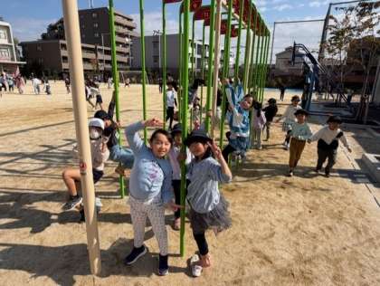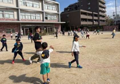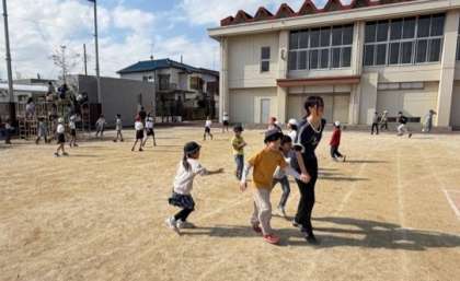 外遊びが気持ちのいい季節です。先生たちも子供たちと一緒に遊んでいます!