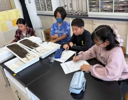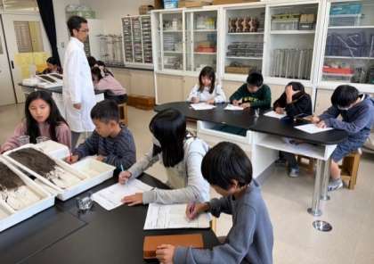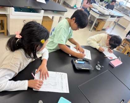 緩やかな傾斜と、急な傾斜の水路に水を流し、様子を比較しました。気づいたことをワークシートにまとめています。