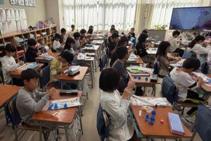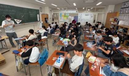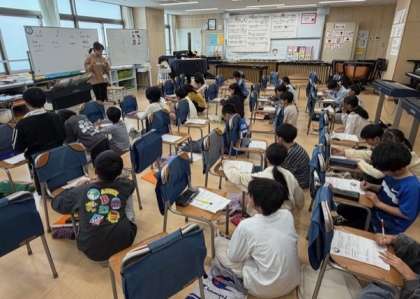 ・ツナマヨトースト ・フィッシュアンドチップス ・クルトン入りオニオンスープ 《ランチタイム》 10月30日は「食品ロス削減」の日です。 食品ロスとは、食べられるのに捨てられてしまう食べ物のことです。 今日は、トーストに使ったパンの耳を焼いてクルトンにし、食品ロスを減らす工夫をしました。 10/30 5年 音楽のおもしろいを見つけよう2