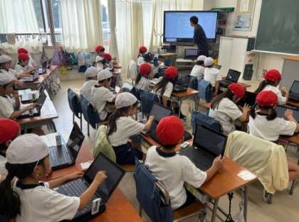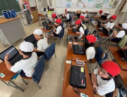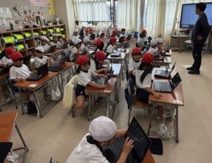 好きな給食メニューなどを、フォームを使って入力しています。1年生には難しい作業、でも、できるようになったなんて、すごい!