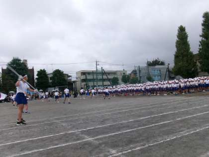 「応援団」が入場してきました! 久しぶりに開一小の運動会に復活した応援団 団長を中心とした団員のまさに魂のこもった応援は、とても立派でした。 応援団のリードで赤も白もとても大きな声で「フレー、フレー赤、」 「がんばれ、がんばれ白」と応援できました。 火曜日には団体競技、選抜リレーが残っていますので、そこで赤白の応援がまたできます! |
