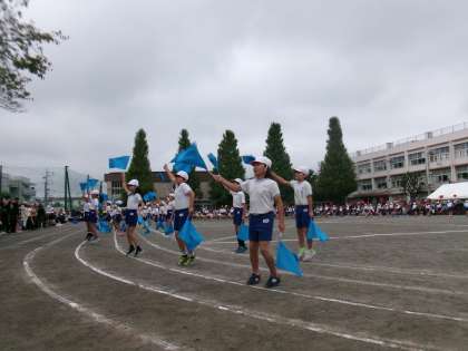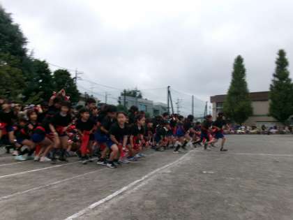 プログラムを変更して まず初めに各学年の「表現」をたくさんの方々に観ていただこうという趣旨で、トップバッターを務めてくれたのは3年生 寒い校庭でしたが、かけ声と大きな動きで3年生の表現である「祭り」を皆で表現しました。 たくさん、たくさん練習してきた演目です。 今日はたくさんの方に観ていただいて本当に嬉しかったですね! 10月25日(土)運動会 応援合戦