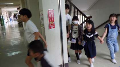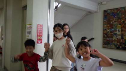 先日の1・2学年に続き、今日は、登校直後の3・4年生の様子です。