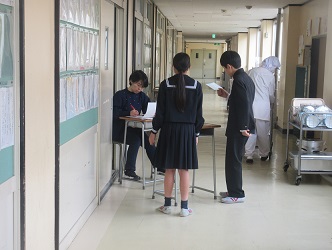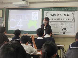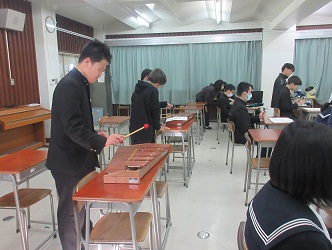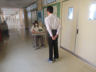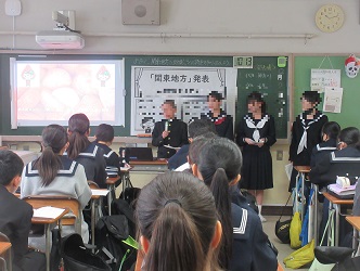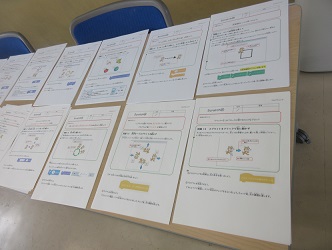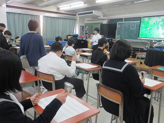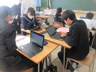 2日(火)4時間目、I組の教室ではプログラミングの授業を行っていました。PCを使ってテーブルに用意されたプログラミングシートを持参し、書かれていることを入力するとPCの中の絵が動きただします。難しそうな数式ですが、得意な生徒はアッという間に入力し、次のシートをまた入力していました。入力すればするほどPC内の絵は細かく動き出します。とても面白い授業でした。