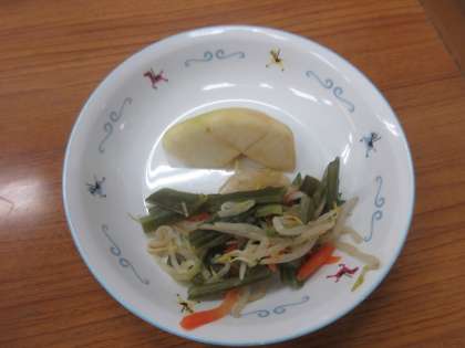 麦ごはん、茎ワカメのサラダ、すき焼き風、果物(ラフランス)、牛乳 すき焼きは牛肉を使いますが、今日の給食は豚肉を使っているので、すき焼き風になっています。でも美味しいです。豆腐、ネギ、ニンジン、白菜などが入り、さらに春菊が独特の風味を出してくれています。春菊は好き嫌いに分かれますが、私は好きです。中でも出汁のしみた車麩はそのままごはんに乗せていただきました。ジュワ〜としみ出るおつゆがたまりません。茎ワカメもコリコリしていて美味しかったです。今年初めてのラフランス、まだ少し硬いかなと感じましたが、いつもの味は美味しいです。2日目、今日も完食です。ごちそうさまでした。