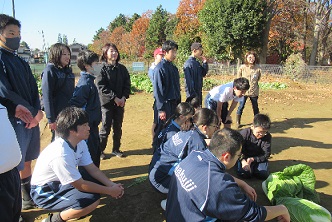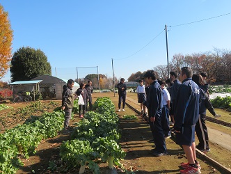 8日(月)3.4時間目、I組はいつもの農園に出かけ、大根堀りを行いました。先日練馬区でも練馬大根引っこ抜き大会行われたということで、今日は生徒たちも気持ちがアゲアゲです。青首大根、練馬大根を引っこ抜いてきました。青首はうまく抜けるのですが、練馬大根は途中が太くなっているので、簡単には抜けませんでした。大根とは別に大きな白菜もいただき、1/4に切って持ち帰ることにしました。お鍋の美味して季節です。鍋にして食べるもよし、生徒の中にはキムチにするという生徒もいて、先生が思わず“そのキムチはわかる”答えたそうです。 座布団一枚ですね。