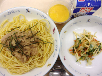 今日は、『練馬大根』を使った“練馬スパゲティ”です。この大根は、練馬区内の畑で育てられ、日曜日に行われた「練馬大根引っこ抜き競技大会」で抜かれたものです。練馬大根は、根の長さが約80cmくらいの細長いもので、真ん中の部分が少し太くなっているのが特徴です。今の時期にしか食べられません。