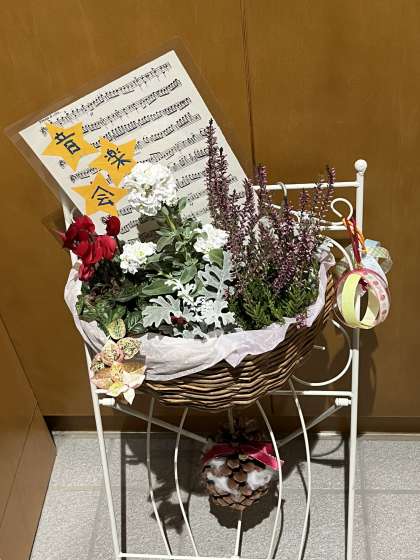 音楽会前日には、ウェルカムボードにもデコレーションをしてくださるとのことです。いつも行事に花を添えてくださり、ありがとうございます。