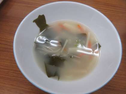 豆わかごはん、鮭のすだち焼き、もやしと小松菜の辛しあえ、けんちん汁、牛乳 豆わかごはんは大豆とわかめが入ったごはん。塩味が効いていて、大豆も柔らかく煮えています。鮭はすだちのせいか、いつもより少しさっぱりしています。もやしと小松菜の辛子あえ、先生方にも好評でおいしいとのこと・・・けんちん汁は精進料理、一説によると鎌倉の建長寺で修行僧が食べていたものが広がったとのこと。精進料理ですが、給食には鶏肉も入っていました。今日は純和食、大人たちはおいしくいただきました。生徒たちは少し物足りなかったかもしれません。