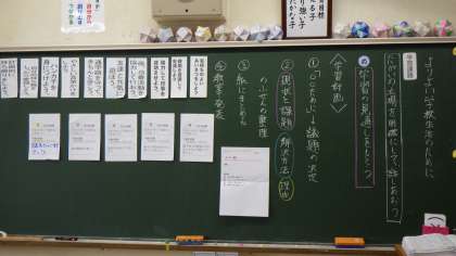 5年生の全教室に、武石移動教室での学年のめあてが掲示されていました。