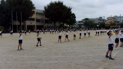 10月9日(木)、6年生は演奏とともに体の動きにも気を付けながらマーチングの練習に取り組みました。学年が一体となって一生懸命に練習に取り組む姿は立派です。本番での演奏が楽しみです。