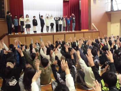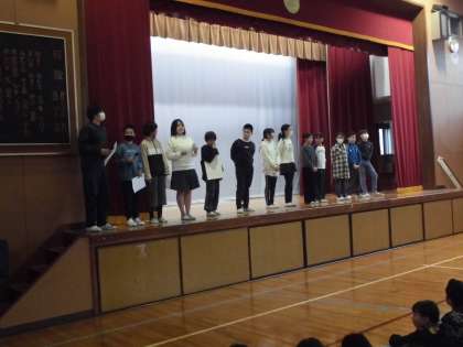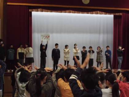 今日は児童集会が行われました。全校でできる簡単なゲームで、「みなさん、○○してください」と言われたらそれを実行し、「○○してください」だけだとやらないという2択ゲームです。「みなさん」がキーワードですね。説明が終わって、「それでは、ゲームスタートです。立ってください。」と言われて、半分くらいが立ったときは笑いましたね。子供たちも「あっ!」という感じでした。大人も引っ掛かりそうになるくらい自然な流れで、ゲームを楽しめました。どこでも誰でもできるので、ぜひご家庭でも遊んでみてください。