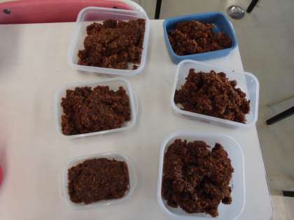 3年生が以前仕込んだ手作り味噌ですが、熟成がすすみ、ついに完成しました。昨日、その味噌をみんなで分け合って持って帰りました。食べてみましたか?きっと、市販品では味わえないような感動があったと思います。昔は各家庭でも作っていたと言われる味噌。もし機会があれば、ご家庭でも味噌づくりにチャレンジしてみてください。