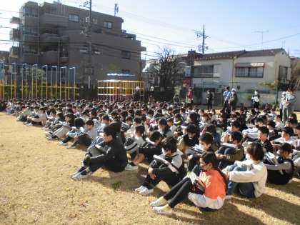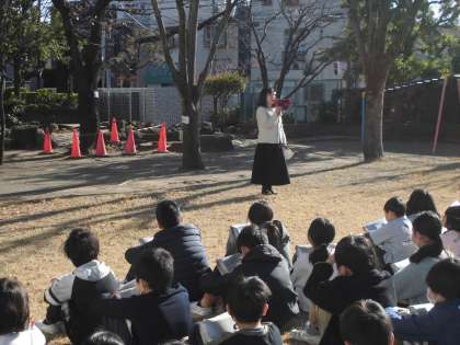 今日は12月の避難訓練が行われました。つい先日、北海道から関東にかけて大きな地震があり、津波警報も出されました。今日も同じところで地震があり、津波注意報が出されましたね。災害は他人事ではありません。今日の訓練では、地震によって放送機器が使えなくなり、伝達出回ってきた避難指示を受けて避難するという想定でした。正確な情報を素早くつかんで行動することが、自分の命を守ることにつながります。もしもの時のために、日頃から気持ちを整えておきましょう。