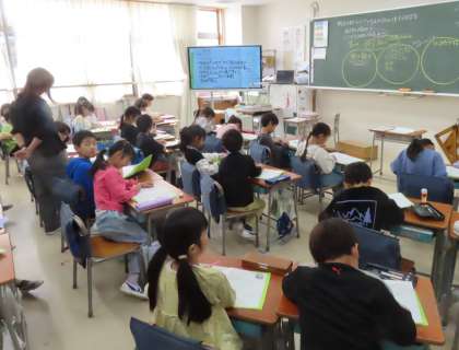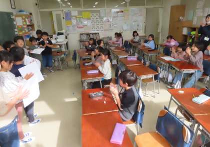 9月と10月にやった係活動を振り返って、発表をしています。残り2か月でどんな活動をやっていくか、これから相談していきます。