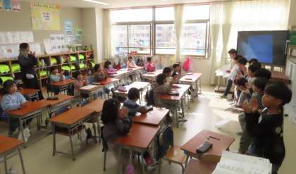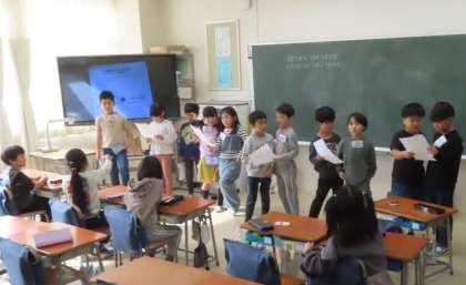 連休明けの朝の会。みんな揃って一週間のスタートです。今週も元気に過ごしましょう!