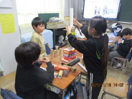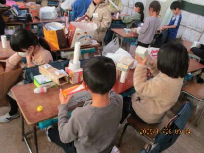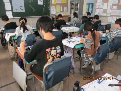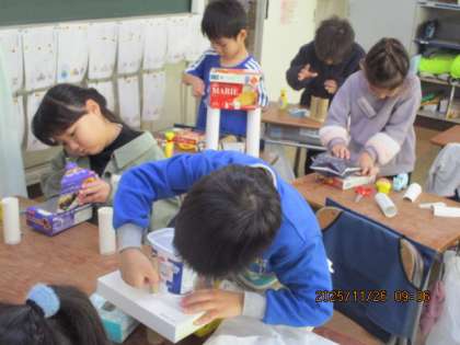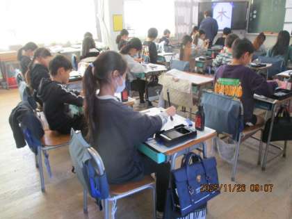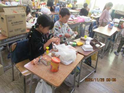 ・鶏肉の甘みそがけ ・青梗菜の和え物 ・かきたま汁 ・牛乳 11/17 図工の学習【4年生】