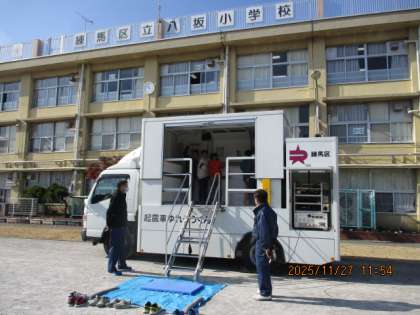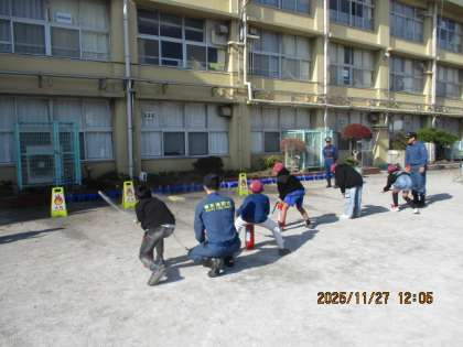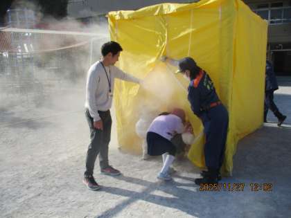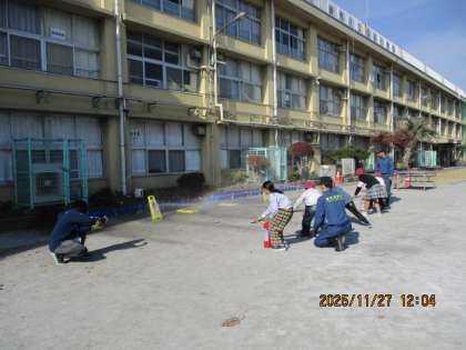 起震車や煙体験、消火器訓練やAED、通報訓練など 学年ごとに、様々な訓練が行われています。