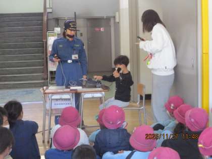 煙体験では、前が全く見えないことに、驚く2年生の姿がありました。