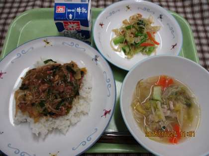 ・ぬっぺ ・ほうれん草とえのきたけの和え物 ・牛乳 11月27日