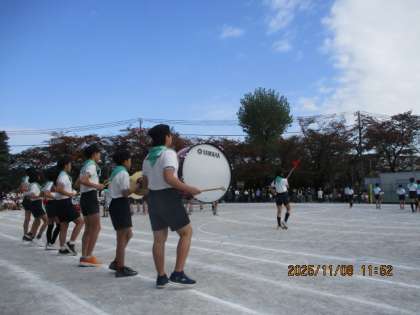 最後まで全力で駆け抜ける姿がかっこいい。 そして、スポーツ・フェスタの最後を締めくくったのは 6年生の鼓笛です。 これまでの練習の成果が発揮され 隊形移動も演奏もばっちりです。 会場中が、6年生に見入っている雰囲気が スポーツ・フェスタの大トリにふさわしく、素敵でした。