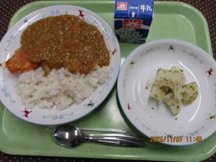 ★チキンカツカレー ・青のりポテト ・牛乳 11/8 スポーツ・フェスタ3【全校】
