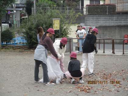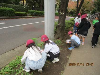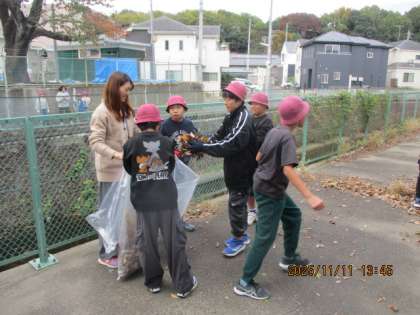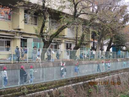 校舎の裏側や 白子川沿いの通路 かえる公園まで出かけて 清掃・美化活動を行いました。 落ち葉が多い時期で大変でしたが とってもきれいにしてくれました。