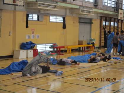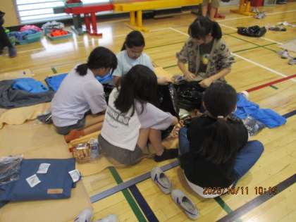 実際に一人分のスペース区画を作り その中で生活する体験をしました。 防災課の方もお招きして 防災トイレの使い方についても教えていただきました。