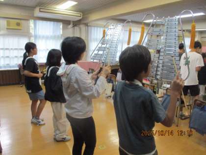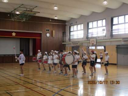 母音に気を付けて、美しく響かせています。 その後は、鼓笛タイム。 足踏みをしながら、一定のテンポで演奏できるように練習中です。