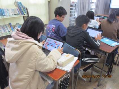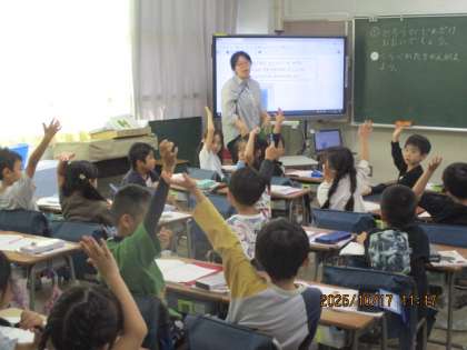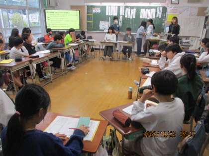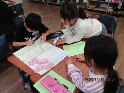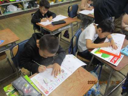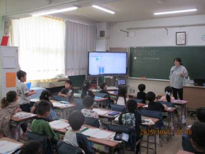 ・小松菜入り卵焼き ・豚汁 ・牛乳 10/14 国語の学習【1年生】