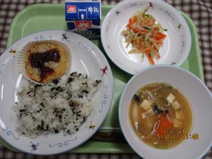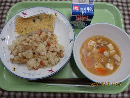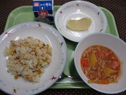 ・チキンビーンズ ・果物(りんご) ・牛乳 10/17 算数の学習【6年生】