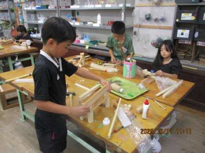 ・焼きコロッケ ・和風サラダ ・野菜たっぷりみそ汁 ・牛乳 10/16 図工の学習【4年生】