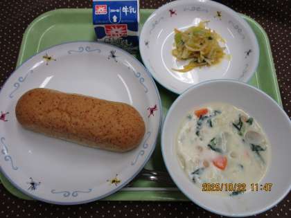 ・マカロニクリーム煮 ・キャロットソースサラダ ・牛乳 10月21日