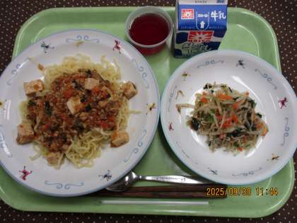 ・炒めナムル ・ぶどうゼリー ・牛乳 9月29日